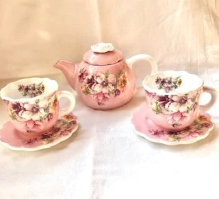 El juego consta de 2 tazas con sus platitos y la tetera.